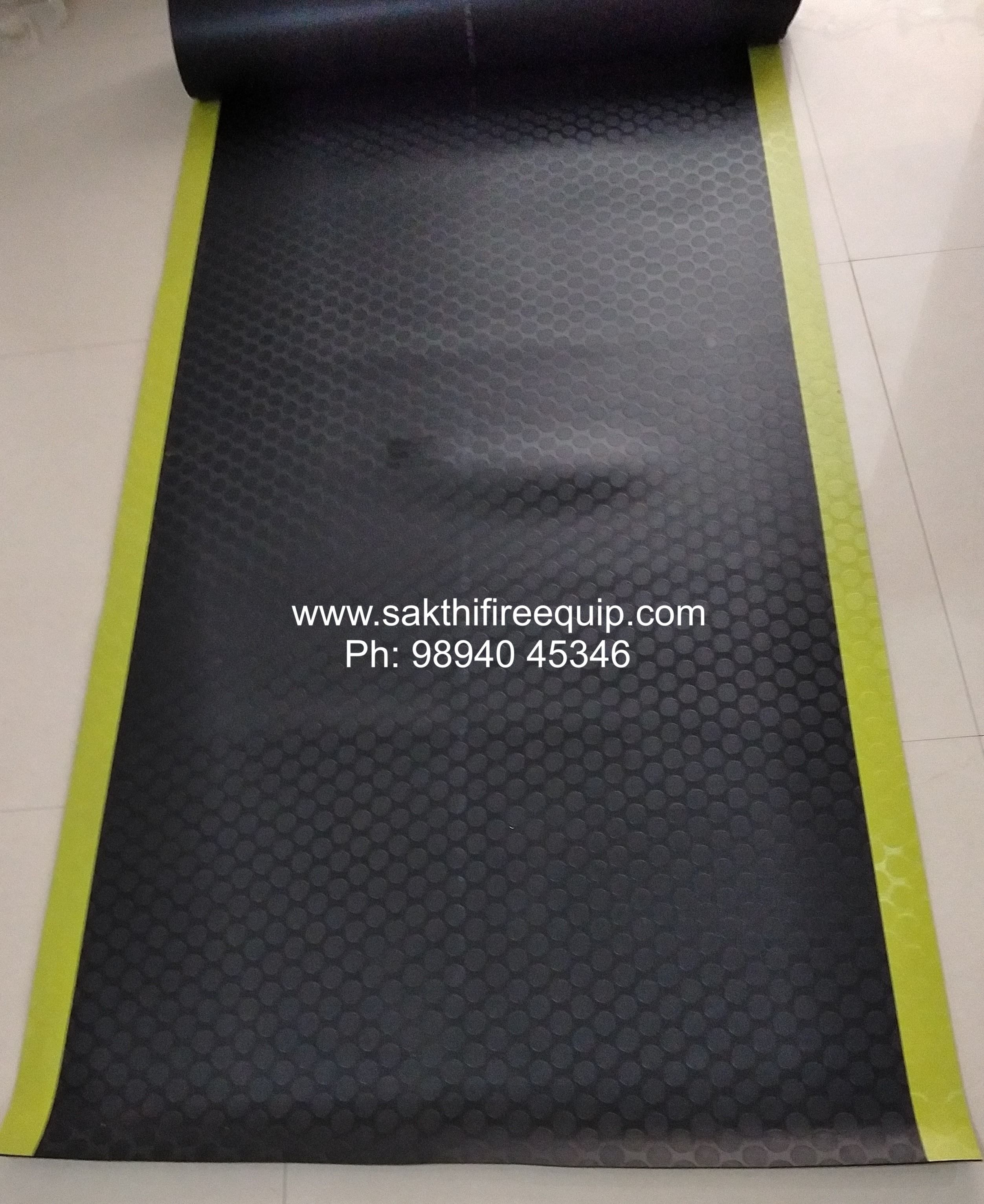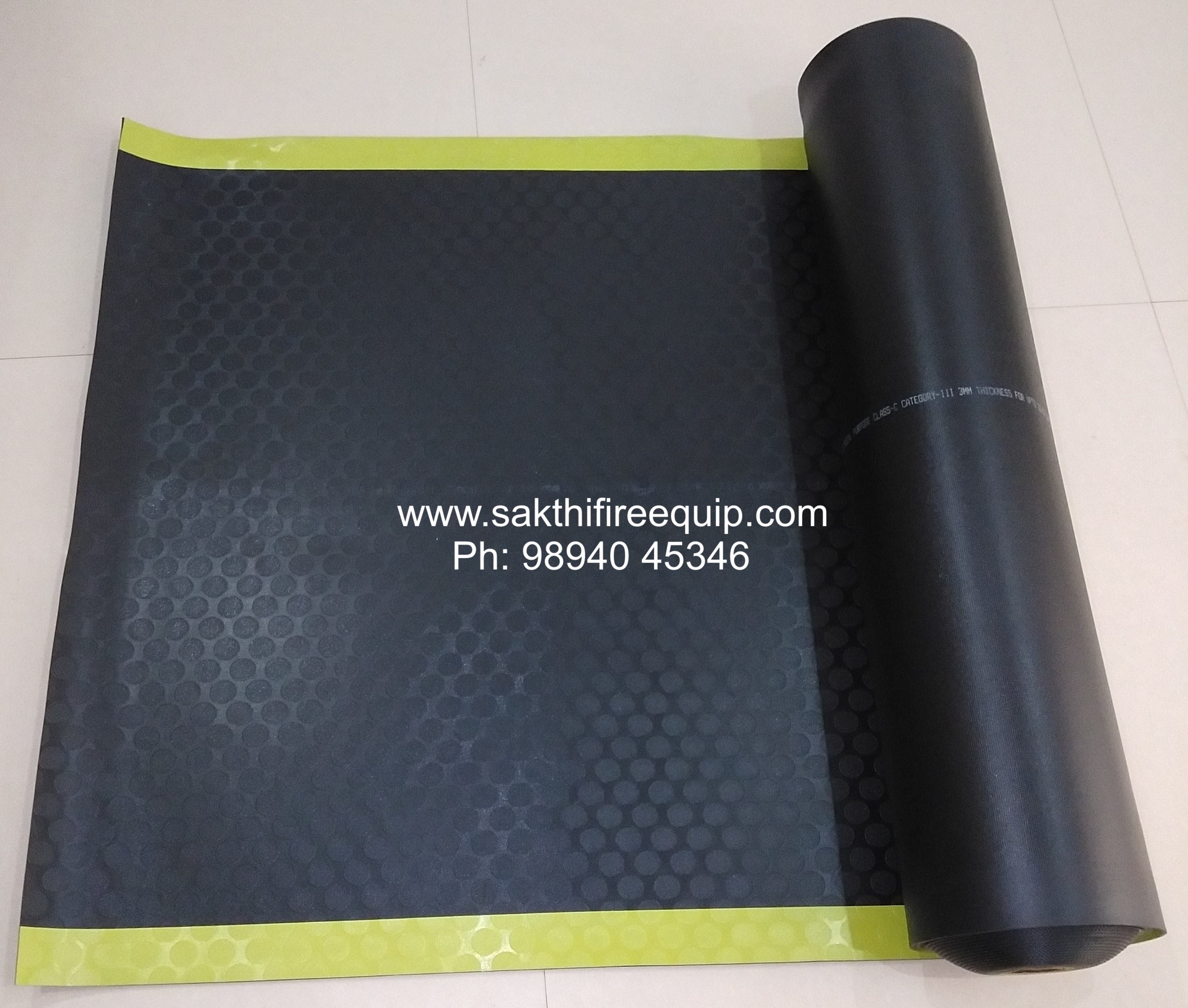 Characteristics Insulation Mats (IS:15652) Indian Standard made to IS:15652, ISI Marked Available Thickness: 2 mm (Class A) for 3.3 KV 2.5 mm (Class B) for 11 KV 3.0 mm (Class C) for 33 KV Material Composition: PVC Elastomer Electrical Insulation: Very High Voltage application: From 415V to 36kV Anti-skid pattern on the top surface Tensile Strength: Very High Flame Retardance: High Insulation Resistance with Water: High Elongation: Very High Installation: Just Spread on the floor or walk way. Optional by adhesive Maintenance: Very Low. Expected Life Span: 10 years Ground Treatment: Not essential Oil Resistance: High Acid Resistance: High Alkali Resistance: High Low Temperature: Good Visual Appearance: Very Good