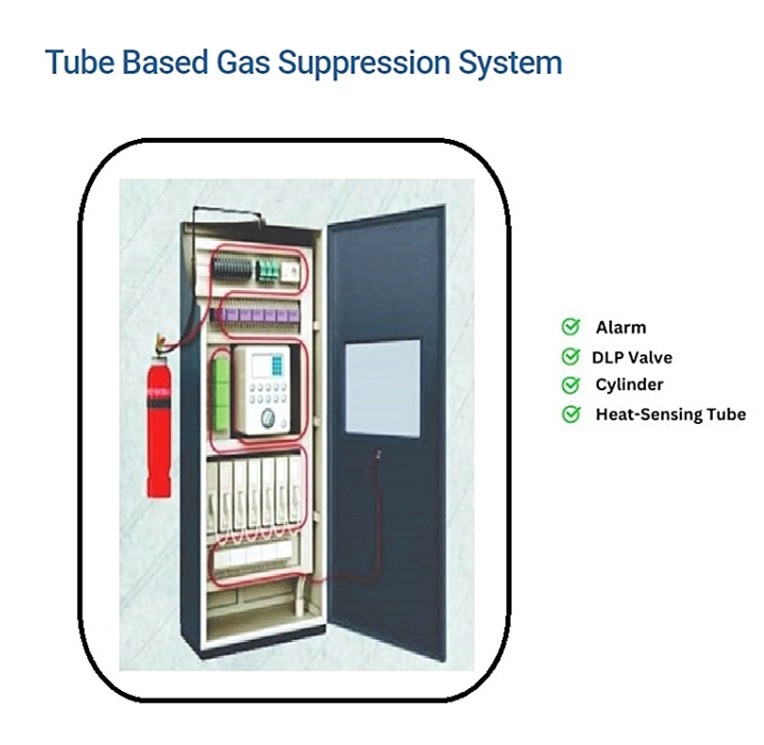 Gas based Polymer Tube fire suppression system is an sophisticated fire extinguishing system meant for complex high value assets like control panels, electrical panels, Motors, CNC equipment, Heavy Transport Vehicles, Kitchens, Server racks. Available in 1,2,4,5,6,9,15 kgs capacity.